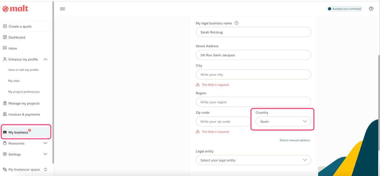 The platform is open to all freelancers, whatever their status or legal form → independent workers in their own name/sole proprietorship and in corporate form/registered company."Blocked" countries where Malt does not accept any freelancers.