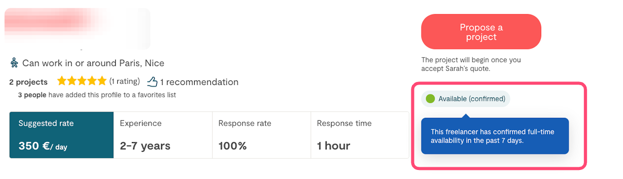 Once the project is completed, you will only need to confirm your availability on your profile and indicate that you are available (as well as the frequency: full time, or only a few days).